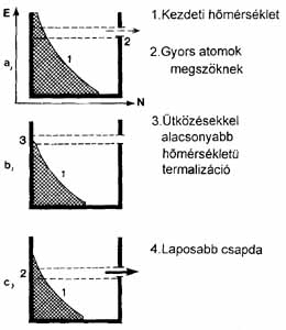 az edény falával való ütközése miatt a gáz lehűl az edény hőmérsékletére.