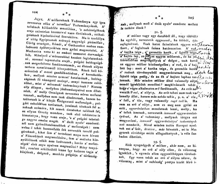 A szerző itt bölcsen belátja a magyarítás célszerűségének korlátait: izmosok egyaránlatja (szilárdtestek egyensúlya) = statika, mivel minden tudós Európai nyelven ezt a szót Statica már bévették, mi is Magyarok rövidsége miatt elfogadhatjuk és véle szabadon élhetünk.