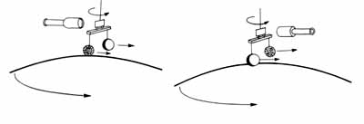 A mérés újdonságának hipotetikus váza a 6. ábrán látható. Képzeljük el, hogy az Északi-sarkon függesztettük fel a két különbözõ összetételû, azonos súlyú testet, és a Nap gravitációs vonzásából adódó gyorsulás különbségét akarjuk meghatározni. 24 óra leforgása alatta a mérlegkar a Nap irányába húzott egyenesre 6 óránként váltakozva (folytonos átmenettel) hol merõlegesen, hol párhuzamosan áll, így a nagyobb gyorsulást mutató anyag hol elõreszalad, hol hátramarad a Föld forgássebességéhez mérve. Így a torziós szálon egy folyamatos, szinuszgörbeszerûen változó csavarodást észlelnénk.