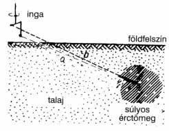 c) Érckeresés elve a torziós ingával