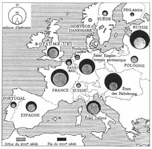 2.ábra. Európa népességének növekedése az elõzõ, a XVIII. században. A Habsburg Birodalom, azon belül hazánk, viharos növekedéssel lép be az új századba, újabb feszültségeket gerjesztve azzal, hogy a növekedés üteme etnikumonként változik (P Chaunu: La civilisation de I' Europe des Lumieres, p. 97.)