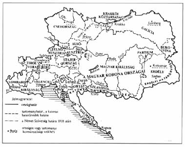 3. ábra A történelmi Magyarország, mint a Habsburg Birodalom örökös keleti tartományainak szinte áttekinthetetlen konglomerátuma [55, 368]