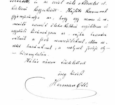 Hermann Ottó levelének részlete