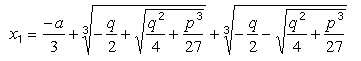 harmadfokú egyenlet megoldását 1540 körül többen is felfedezték, és anélkül, hogy pontos diszkusszióbba belemennének, a megoldást szolgáltató ún. Cardano-képlet az egyik gyökre az alábbi alakú