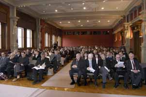 Diákpályázatunk díjkiosztó ünnepségének megnyitása. Az elnökségben (balról): Staar Gyula, a Természet Világa főszerkesztője, Kozma Lászlóné, a Magyar Hivatalos Közlönykiadó igazgatóhelyettese, Bencze Gyula, szerkesztőbizottságunk tagja, Tardy János, az Európai Természetvédelmi Központ alelenöke, Dürr János, a TÚK főtitkára A tizenöt éve ültetett fának