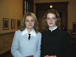 Kalmár Andrea és Babuskov Angelika második díjat kapott Bencze Gyula – a fizikai tudományok doktora, aki Gergely János akadémikus távollétében a díjátadó ünnepség elnöki posztját is betölti – két kategória díjazottjait is köszönti. Először néhány szót a Metropolis különdíjról – kezdi a díjak átadásakor. Ezt a díjat az a Nicholas Metropolisról elnevezett alapítvány ajánlotta fel diákpályázatunknak, amelyet a tudós volt kollégái és barátai – köztük Balázs Nándor professzor – hoztak létre Los Alamosban, évekkel ezelőtt. A különdíj pályázati feltétele az, hogy a tanuló számítógép segítségével, alkotó módon vizsgáljon meg valamilyen érdekes problémát dolgozatában. Ebben az évben Horváth Dóra és Kovács Gábor Imre "Hát ez kész káosz, avagy egyszerű nemlineáris jelenségek" című dolgozata bizonyult e kategóriában a legjobbnak. A Szkeptikus esszé díjat idén Fogarasi Anna-Mária "Modern dialogo. Kivezetés a tértechnológiából" című olvasmányos, szórakoztató dolgozata nyerte el.