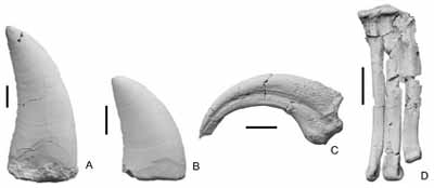 fogai (A-B), egy tépőkarom (C) és egy korai,