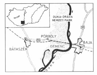 Duna A jelenlegi Duna- meder és futásirány a holocén elején alakult ki. A völgy Bogyiszlónál több mint harminc kilométerrel a legszélesebb, Bátánál kb. tíz kilométerrel a legkeskenyebb. A Duna kisvíznél alsószakasz jellegűvé válik, a csökkent hordalékszállító képesség változatos formájú lerakódásokat hoz létre, közben a folyó ágakra szakad. Közepes víznél középszakasz jellegű, meanderei a szabályozások előtt bejárták a széles völgyet. Nagyobb árvizeknél a hullámtér tengerré változik és annak minden részén hordalékot rak le. Korábban a völgy nyugati peremén folyt és Bátánál torkollott a Dunába a bakonyi patakokból táplálkozó, majd a Kapos és Sió vizét felvevő Sárvíz, amelyen a források szerint a hajók a középkorban Szekszárdig jutottak fel. A török hódoltság végére a természet korlátlan úr lett a Sárközben, a visszafoglalt részeken bőven volt művelhető terület. Később, a betelepítések nyomán meginduló fejlődés miatt vált fontossá, hogy a mezőgazdasági területeket a vizek visszaszorításával, szabályozásával gyarapítsák. Felvetődött a töltésépítések gondolata, de az elöntések várható valószínűleg elmaradnak, az itt élők ellenezték a tervet. A lakosság fő megélhetését akkor az ártérben a legeltetés és a hagyományos pákász életforma biztosította. A Duna szabályozására és a töltésépítésre a végleges rendezési terveket 1852- ben Halász Gábor készítette el, a munkák során a Sárvizet néhány kilométeres új meder kialakításával a Bogyiszló melletti régi Dunaágba vezették. A feleslegessé vált régi Sárvíz- mederből lett a fő belvízlevezető csatorna. A terület fő tulajdonosa, a Kalocsai Érsekség nem lépett be a töltésépítő társulatba, így a gátak a birtok peremére, a mai Gemenc határára épültek. A Nyéki- Holt- Duna a XVIII- XIX. század fordulóján természetes módon fűződött le és vált holtággá. Nevét bizonyos Nyéki nevű, halász árendásról (haszonbérlőről) kapta. A Nyéki- Holt- Duna kezdetben kelet- nyugati, majd délre forduló, mintegy 2,3 km hosszúságú, felső végén kettéágazó, lapos partvonalú, rétek és nádasok övezte erősen feliszapolódott morotvató. A vízfelület nagysága 0,4 méteres átlagos vízmélységnél 10 hektár, ugyanez 0,8 méternél 17 hektár körüli. A tó alsó végén a 1,5 km hossz úságú Felső- Címer- fokkal; felső végénél a 1,5 km hosszú, a Baja- Pörböly köz- és vasút pillérei között áthaladó Sárkány- fok a Cserta- Dunán és a Vén- Dunán keresztül kapcsolódik a nagy Duna mederhez. A XX. században a korábban átmetszésekkel Dunaföldvártól a déli országhatárig 83 km- el rövidített Duna esése nagyobb lett, a megnövekedett hordalékszállító képesség miatt a meder bevágódott és a jellemző vízszintek pedig csökkentek. Ennek oka az, hogy a mederszélesség változtatásában partvédelemmel korlátozott folyó egyetlen lehetősége a mederfenék megbontása. A sikeres folyószabályozás járulékos hatásai, a fokokban kialakult feltöltődések és szűkületek miatt a múlt század végére a gemenci mellékágrendszer vízforgalma csökkent. A Nyéki- Holt- Dunát mind a Címer- fok, mind a Sárkány- fok felől csak 500 cm- t meghaladó bajai vízmércén mért Duna vízállásnál érte el a folyó vize. A következmény a ritkábbá és rövidebbé váló hullámtéri elöntések formájában jelentkezett. Előzőek alapján felismert szükségszerűség a vízrendszer szelvényméreteinek növelésével ill. elzáródásainak megszűntetésével a fokok és mellékágak vízcseréjének, azaz a hullámtér keresztirányú dimenziójának javítása. Ez a Nyéki- Holt- Duna esetében a két fok medrének teljes hosszon történő megtisztítását, helyenként szelvénybővítést és az áttöltések megszűntetését jelentette. A Sárkány- foknál a beavatkozás összetettebb, mert a kapcsolódó Cserta- Duna és Vén- Duna hasonló jellegű beavatkozást igényelt. A Címer- foknál a munka egyszerűbb, hiszen elsődleges fok, azaz közvetlenül a Dunából nyíló vízkapu. Egyúttal a hosszú távú megoldás érdekében fontos feladat a morotvába bejutó víz hordaléktartalmának csökkentése, így lassítható feltöltődése. A munkák elvégzése óta már a korábbinál mintegy 50 cm- el alacsonyabb vízállásnál éri el a Duna vize a morotvát. Ami jó áradásnál, az csökkenő vízállásnál gondot okozhat: apadó Dunánál, a csatlakozó fokokon a morotvató jelentősen leürülhet, így a víz visszatartására szolgáló műtárgyak szükségesek. A Sárkány- fok kiágazásánál zsilipes küszöb, a Címer- fok kivezetésénél fenéklépcső épült. Gemenc déli részének mélyterülete olyan víztest, amelyben jelentős vízmennyiség tárolható. A Nyéki- Holt- Duna a tőle délkeletre, a Duná ig terjedő Pörbölyi- erdő