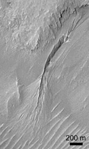 Marsi törmeléklejtõk: van víz a felszín alatt?Nem kétséges, hogy a Mars-kutatás végsõ kérdése a következõ: volt-e, vagy esetleg van-e ma is élet a Marson? Ehhez közvetlenül kapcsolódik a bolygó vízkészletének vizsgálata: múltbeli és jelenlegi mennyisége, eloszlása valamint elõfordulási formái. Annak tudatában, hogy a felszín jelenlegi hõmérsékleti és nyomáskörülményei nem teszik lehetõvé folyékony víz tartós jelenlétét, a Mars vizét máshol kell keresni: a felszín alatt.