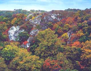 Cserjés facsoportok és száraz sztyeprétek mozaikja teszi jellegzetessé a tájat. A bokorerdők, mint nevük is mutatja, az erdő és a cserjés között alkotnak átmenetet. A fák közül a molyhos tölgy és virágos kőris sem nő 4-6 m-nél magasabbra. A kisebb facsoportokat szegélyként veszi körül a cserszömörce (Cotinus coggygria), melynek tűzvörös lombszíneződése különösen ősszel nyújt megragadó látványt a hófehér dolomitsziklákon. Sárga pillangósvirágú, díszcserjének is beillő szubmediterrán elterjedésű cserje a pukkanó dudafürt (Colutea arborescens). Hólyagosra felfúvódott, üreges hüvelytermései nyomásra nagy pukkanással szakadnak szét.